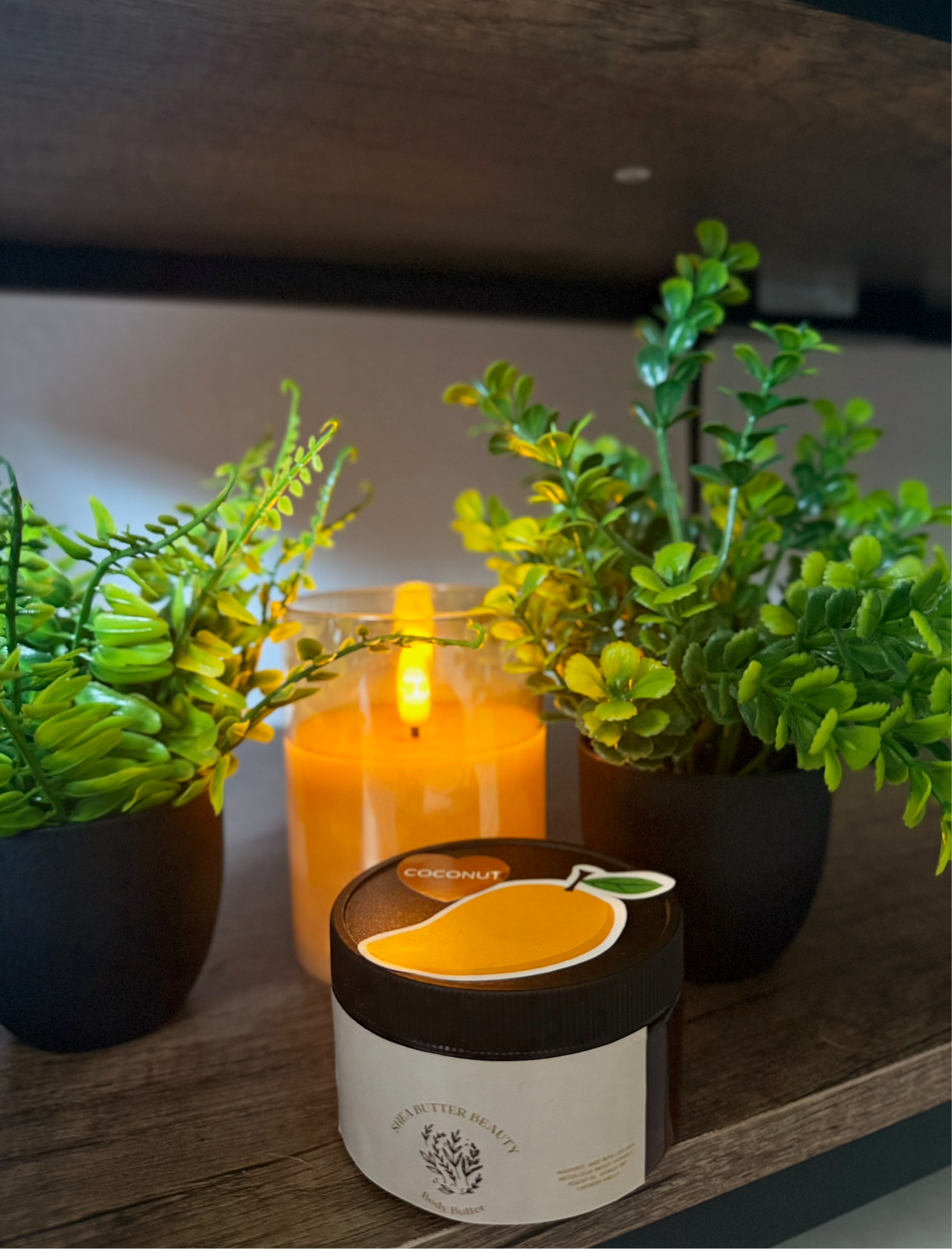 This luxurious body butter is a rich blend of Shea Butter, Cocoa Butter, and Vitamin E, offering deep hydration and nourishment for your skin. Rosehip oil helps reduce inflammation, smooth fine lines and cellulite, and minimize the appearance of under-eye bags enhancing your skin’s natural radiance. Infused with the tropical scent of coconut and mango, this lush formula softens and restores the skin, leaving it velvety smooth, rejuvenated, and beautifully fragranced. Perfect for daily use to maintain soft, healthy, glowing skin.